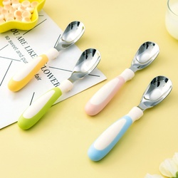 Vente en gros de cuillère d'alimentation en acier inoxydable 316 de qualité alimentaire pour bébés avec poignée en PP cuillère à soupe d'entraînement portable pour enfants facile à saisir avec boîte en PP