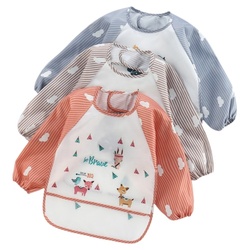 Wholesale Waterproof Long Sleeve Smock for Baby Kids Feeding Bib With Apron Pocket Reusable Easy to Clean Cute Full Sleeved Bib