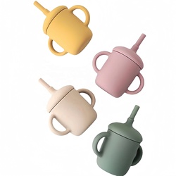 Commercio all'ingrosso per uso alimentare BPA Free in Silicone per neonati tazza Sippy senza fuoriuscire in Silicone tazza per l'alimentazione del bambino con manico in paglia