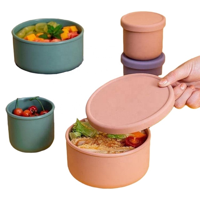 特別オファー食品グレードシリコンフードボックスリークプルーフスクールキッドポータブルフードコンテナシリコン弁当ランチボックス蓋付き