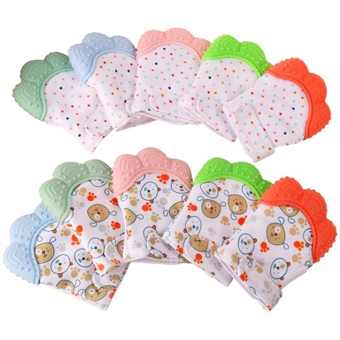 AmAzonホットセール食品グレードシリコーンベビーTeether Mitten幼児噛む柔らかい歯がする痛みを軽減おもちゃ0-6ヶ月
