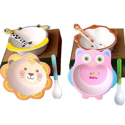 Hot Sales Reusable Bonito Cartoon Fibra De Bambu Infantil Food Bowl Spoon Set Household Baby Meal Bowl Bambu Kids Dinnerware Set